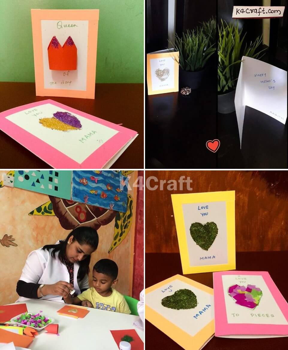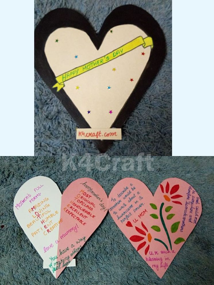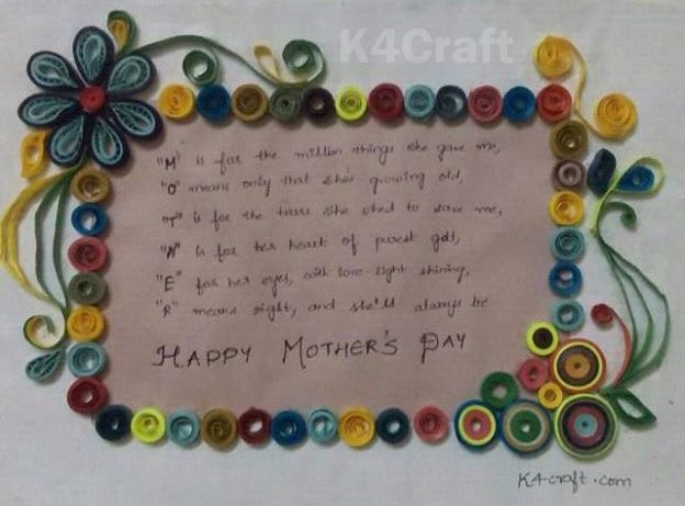 - Draw a heart. Stick red quilting paper on the heart. And write happy Mother’s Day. Then stick on a paper.