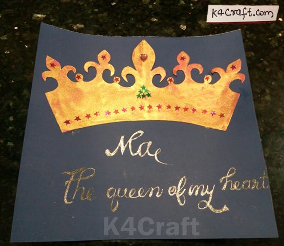 - Cut a square deep blue model paper and paste the crown on top of it with glue.