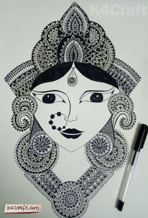 Procedure: Just take a black gel pen and a paper. And get started. It’s a complete free hand drawing. Using only a black gel pen.