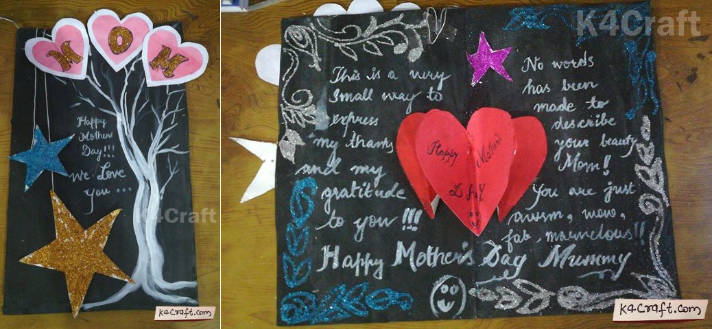 - Draw a heart. Stick red quilting paper on the heart. And write happy Mother’s Day. Then stick on a paper.
