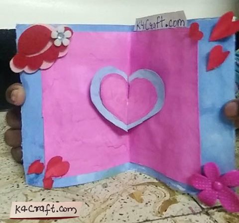 - Cut a thick strip n stick two hearts of different sizes on the strip.