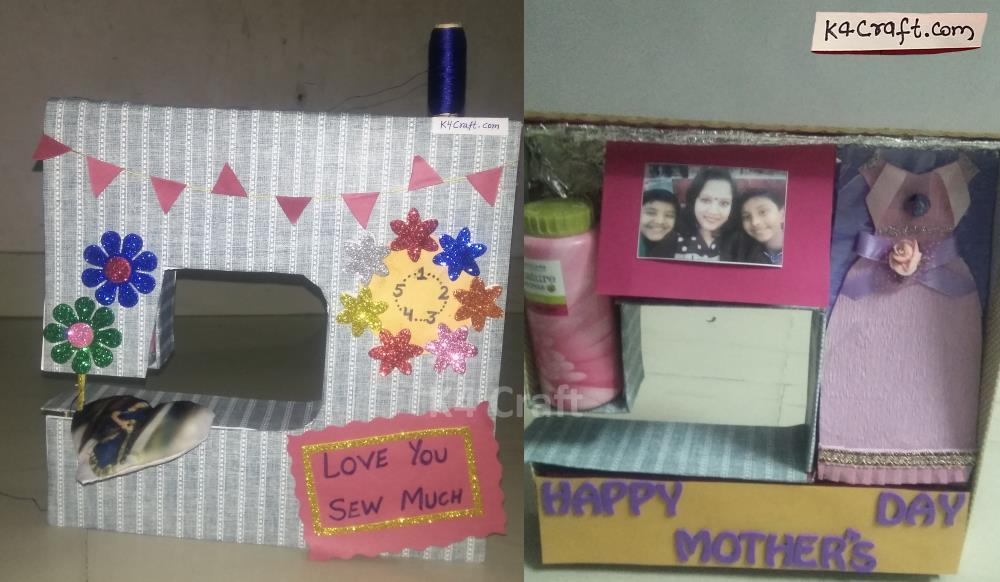 - Take an old sweet box and cut it in the shape of a sewing machine