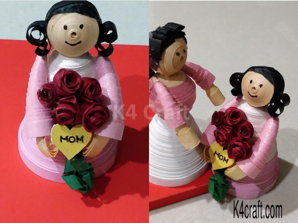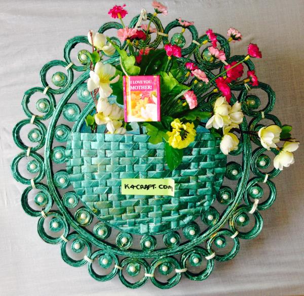 - Make paper flowers with quilling strips and quilling dolls and arrange them as in figure.