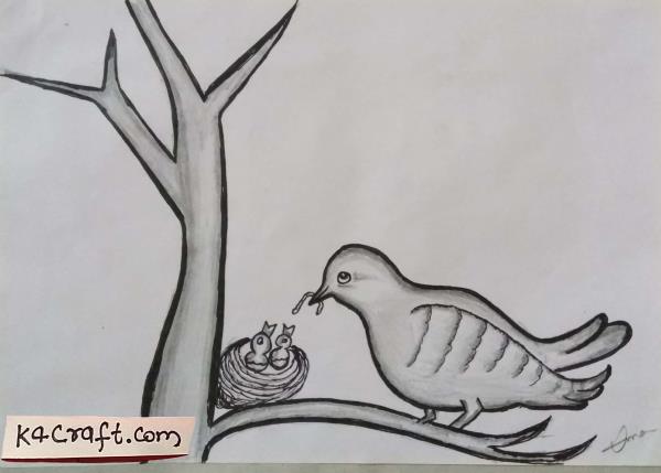 Mother’s Day Special Painting “Bird With Her Baby” By Temperla Uma Venkata Naga Jyothi