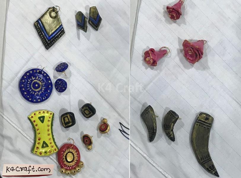 - Things required are hooks for making pendants, studs for earrings, paint and clay.